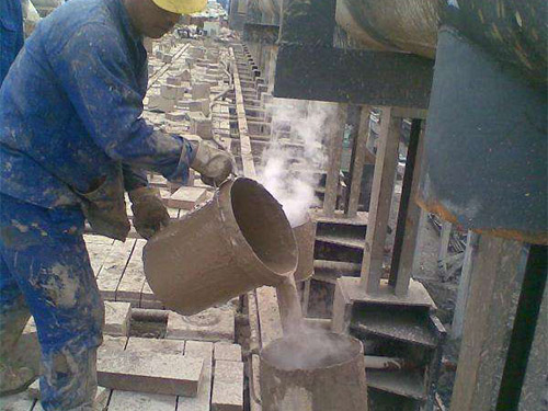 4) 将拌合均匀的灌浆材料灌入模板中并适当敲击模板。